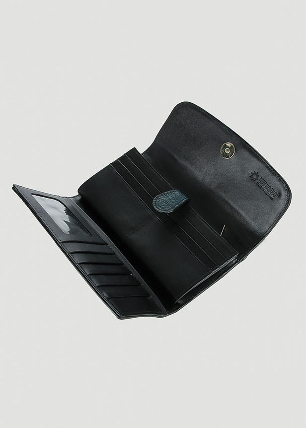 Ví/Bóp nữ da bò Huy Hoàng 3 gấp lửng màu xanh 3168
