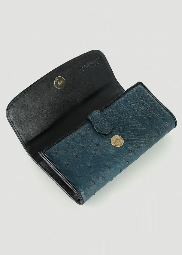 ✨Ví nữ da đà điểu Huy Hoàng 3 gấp màu xanh đậm HT3453