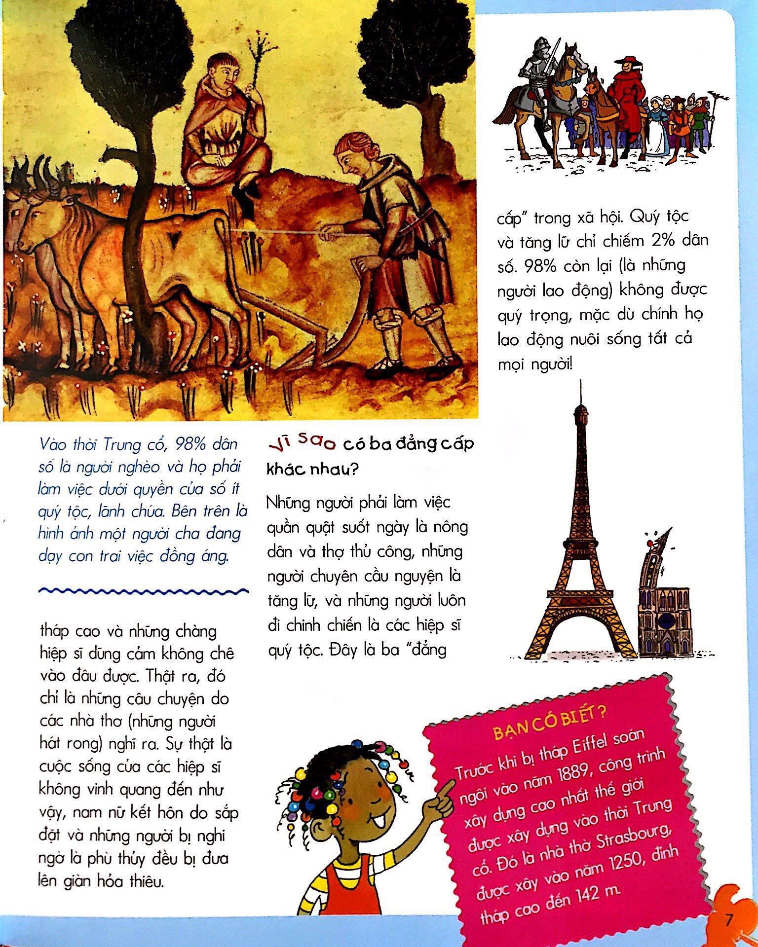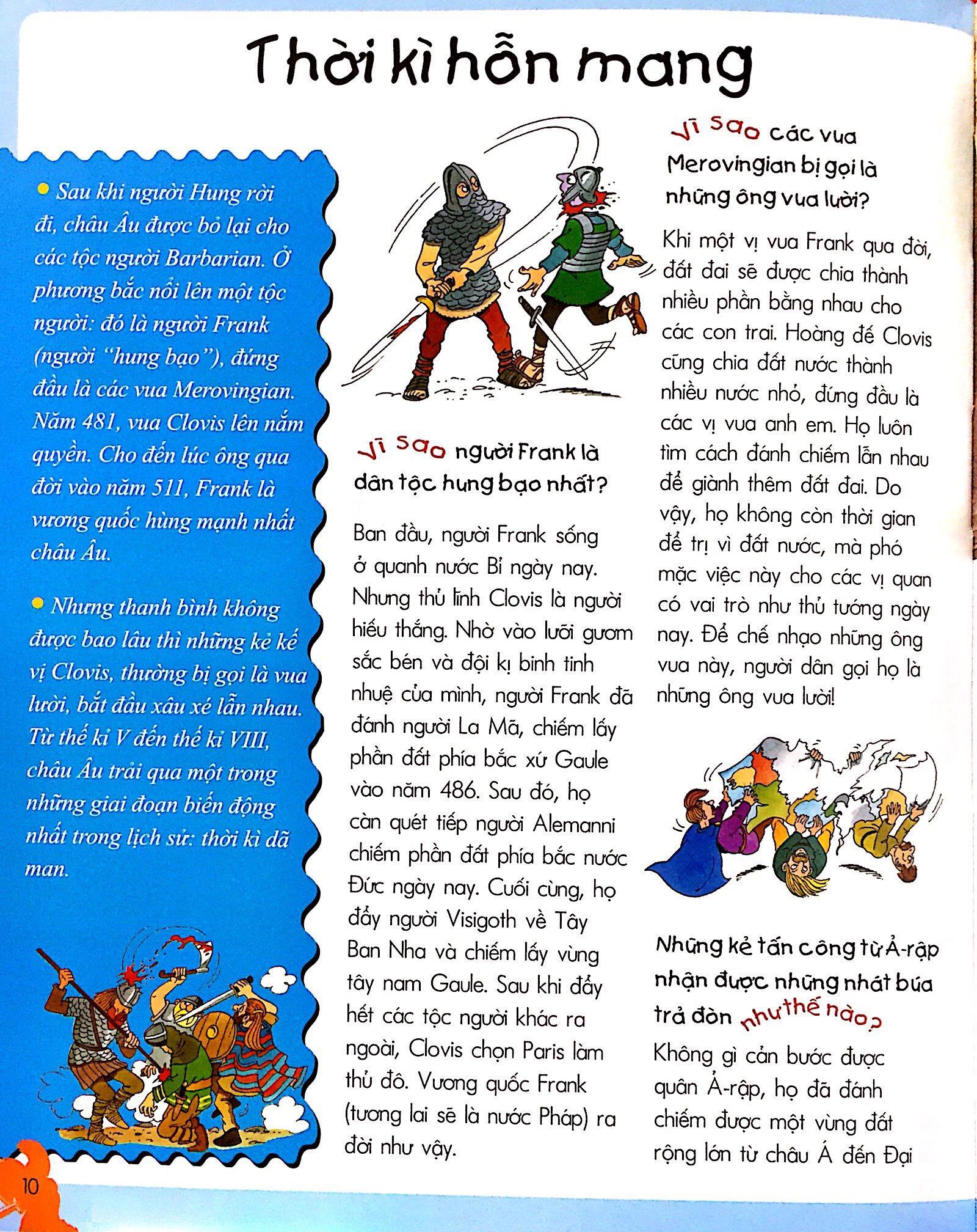 Vì sao mỗi lâu đài có một khu vườn bí mật? Trở thành hiệp sĩ như thế nào? Vì sao đường phố thời Trung cổ thường rất dơ bẩn? Vì sao Charlemagne sáng tạo ra trường học? Vì sao Jeanne d'Arc lại chết trên giàn thiêu?... Đáp án cho những câu hỏi trên và 300 câu hỏi khác được tập hợp trong cuốn sách này, tạo nên một kho kiến thức tuyệt vời cho cả trẻ em và người lớn.