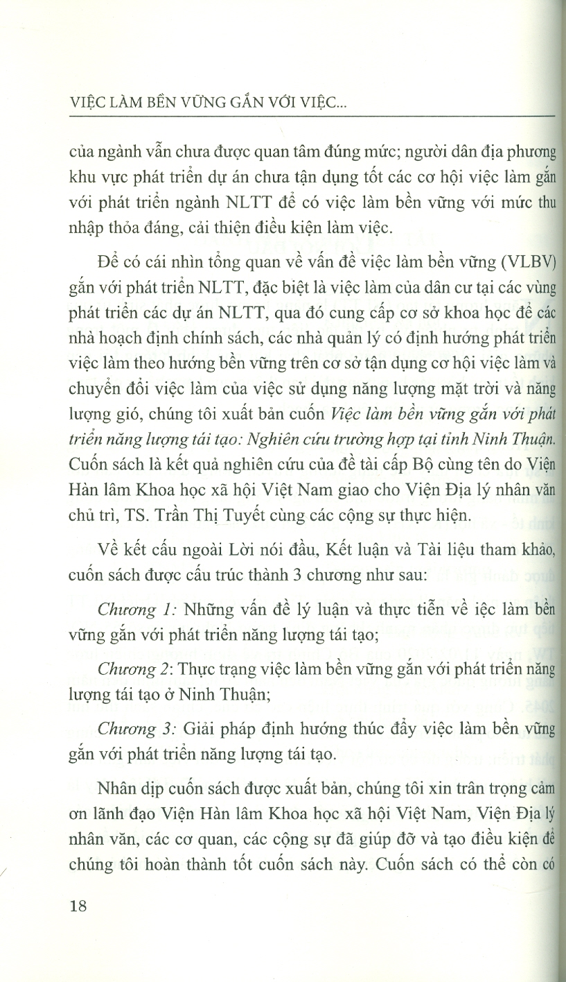 ✨Việc Làm Bền Vững Gắn Với Việc Phát Triển Năng Lượng Tái Tạo (Nghiên Cứu Trường Hợp Tại Tỉnh Ninh Thuận) - TS. Trần Thị Tuyết chủ biên