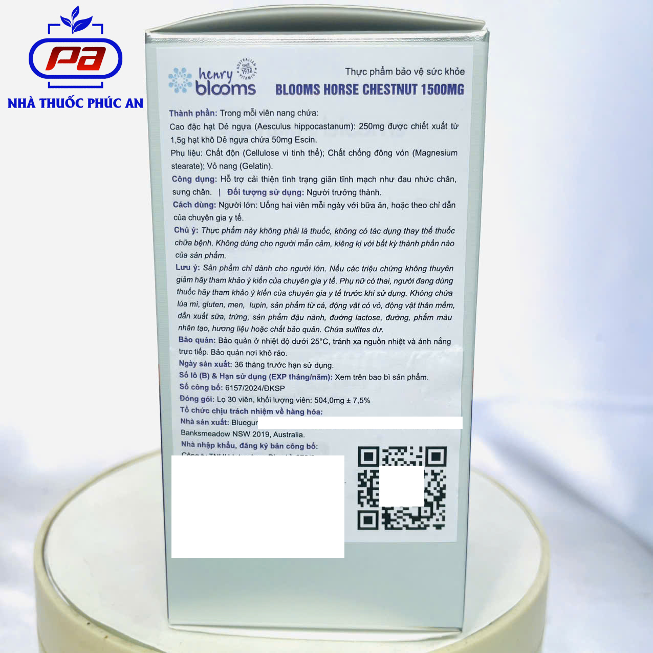 ✨Viên hỗ trợ suy giãn tĩnh mạch Henry Blooms Horse Chestnut 1500ml 30 viên