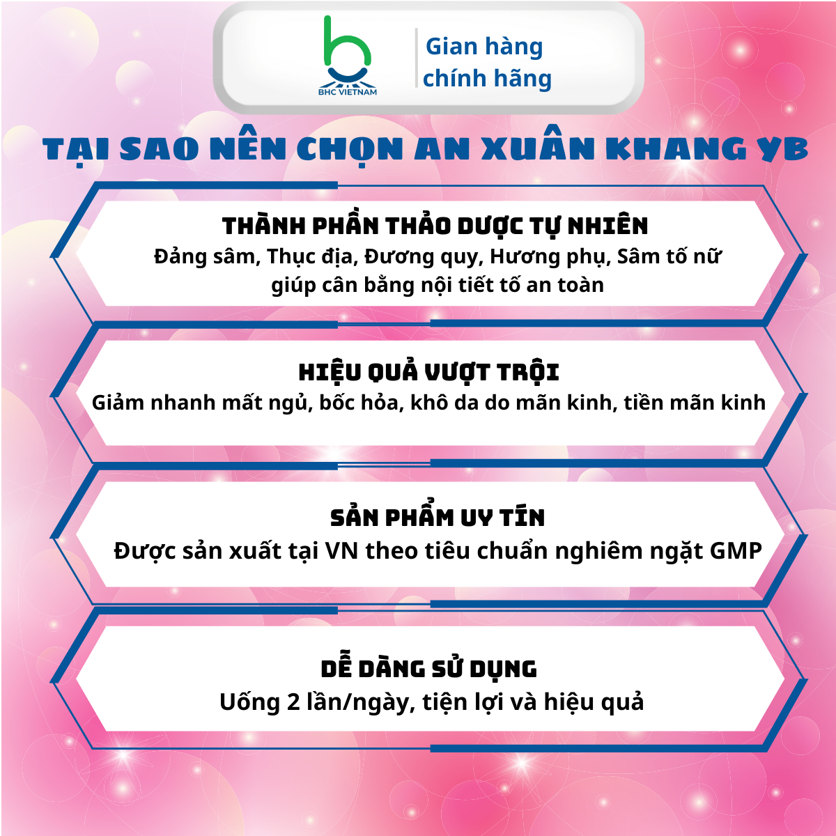 Viên Uống AN XUÂN KHANG YB – Hỗ Trợ Giảm Mất Ngủ, Khô Da, Cân Bằng Nội Tiết Tố Nữ