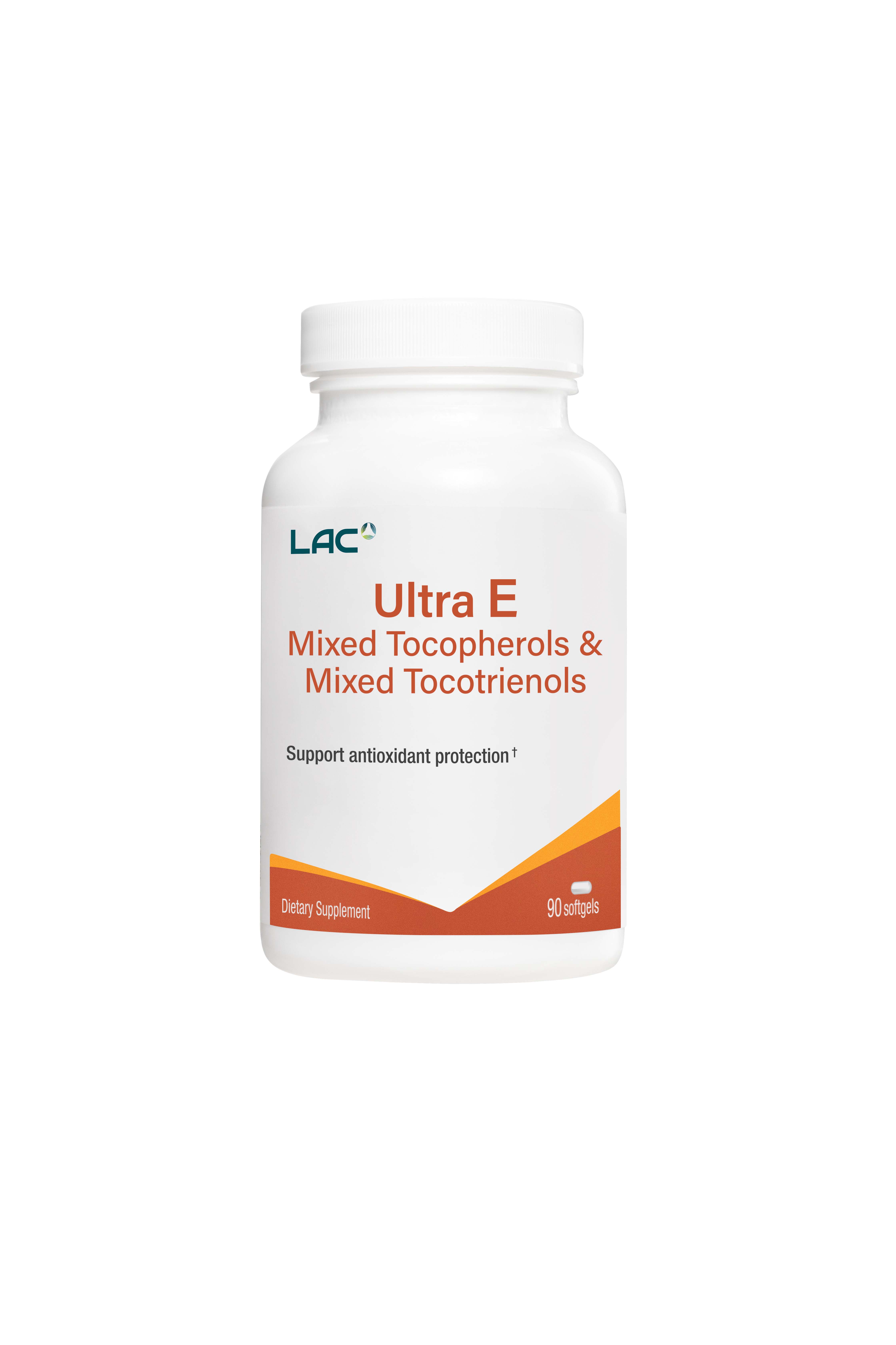 VIÊN UỐNG BỔ SUNG VITAMIN E CHỐNG OXY HÓA LAC ULTRA E MIXED TOCOPHEROLS & MIXED TOCOTRIENOLS (90 VIÊN) khai thác tối đa sức mạnh chống oxy hóa của cả tám dạng Vitamin E, bao gồm tocopherols và tocotrienols. Với công thức vượt trội so với các sản phẩm Vitamin E thông thường, LAC Ultra E Mixed Tocopherols & Mixed Tocotrienols mang đến sự hỗ trợ toàn diện cho sức khỏe tim mạch, củng cố hệ miễn dịch và giúp làn da thêm rạng rỡ.