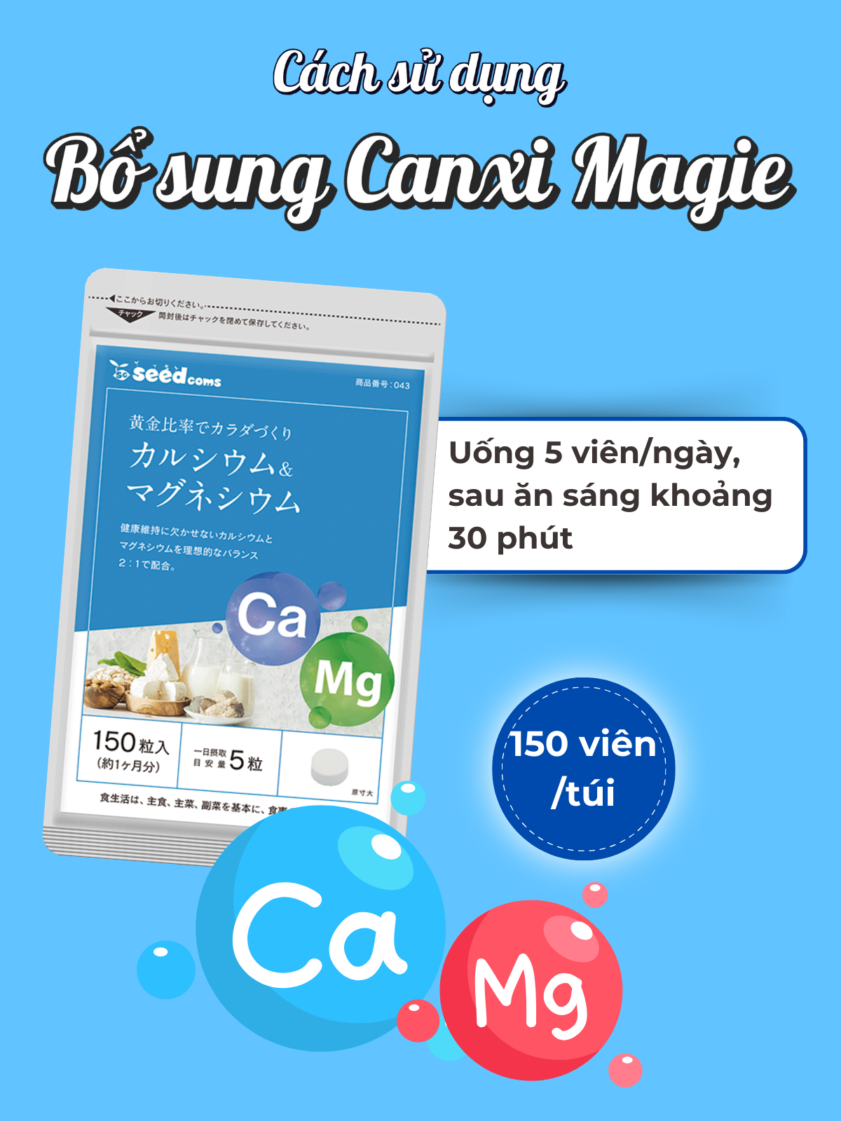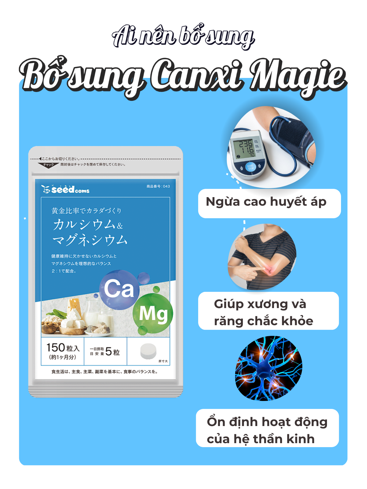 ✨Viên Uống Canxi Magie Hỗ Trợ Xương Khớp Chắc Khỏe Và Ổn Định Hoạt Động Của Hệ Thần Kinh Seedcoms Nhật Bản