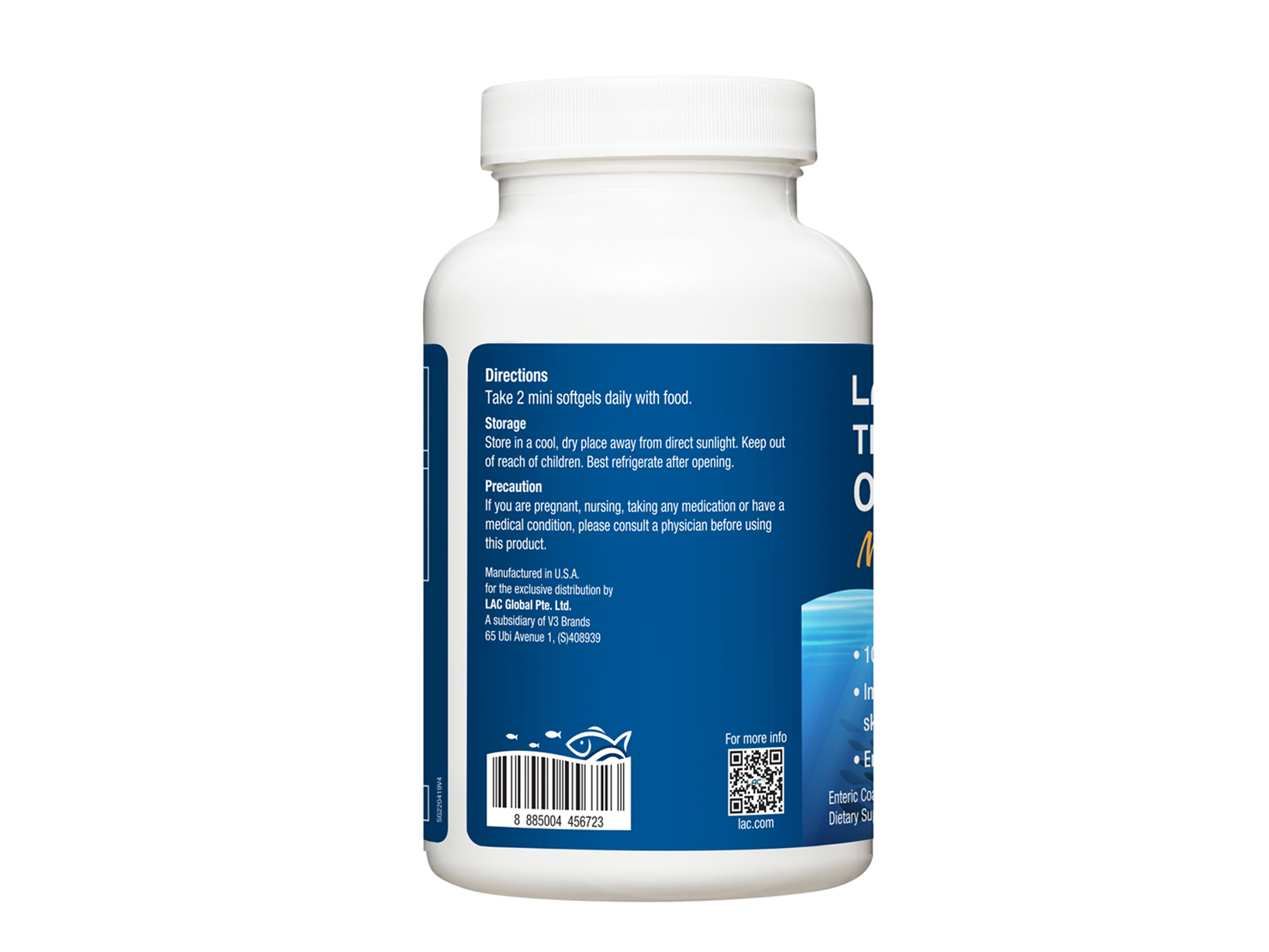 VIÊN UỐNG DẦU CÁ BỔ SUNG OMEGA HỖ TRỢ TIM MẠCH LAC TRIMAX OMEGA FISH OIL MINI (120 VIÊN) chứa hàm lượng axit béo Omega-3 gấp 3 lần so với dầu cá thông thường giúp hỗ trợ tim mạch, tăng cường chức năng não và phục hồi sức khỏe khớp.