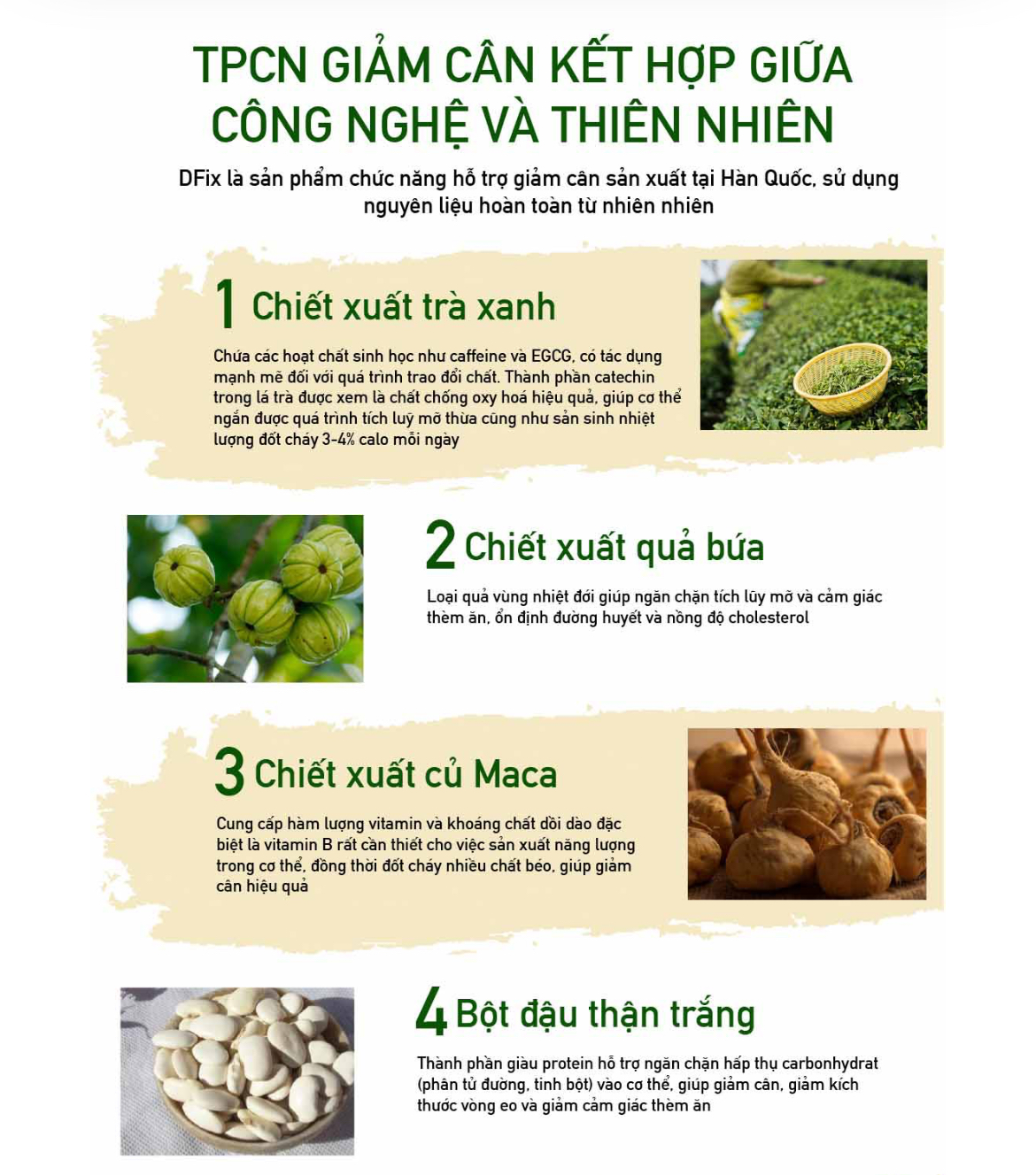 Công dụng chính: Tăng cường trao đổi chất, tăng sinh nhiệt, đốt cháy mỡ thừa mới và mỡ thừa lâu năm khó tiêu hủy. Tăng cường năng lượng bổ xung vitamin và khoáng chất.
