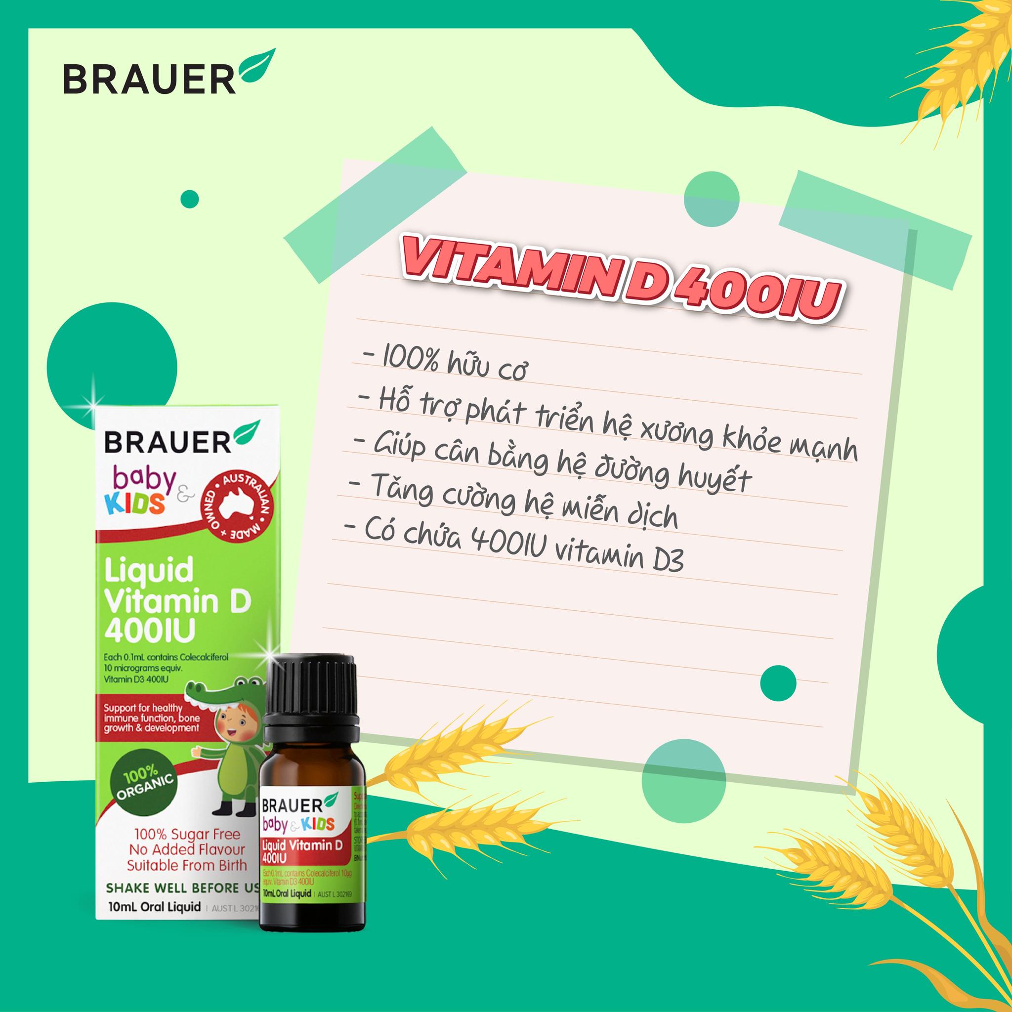Vitamin D3 cho trẻ sơ sinh, trẻ nhỏ và người lớn Brauer Úc tăng hấp thu canxi giúp trẻ phát triển chiều cao và hệ xương chắc khỏe, phòng chống loãng xương ở người lớn, ngủ ngon giấc, tăng sức đề kháng