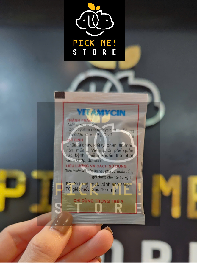 Mua tại TiktokMỗi gam chứa: Doxycycline (dạng hydrate) 50mg Vitamin B1 4mg Vitamin C 100mg Tá dược vđ 1 g CHỈ ĐỊNH Chữa tiêu chảy, kiết lỵ, phân lẫn máu, nôn, mửa... Viêm phổi, phế quản, các bệnh nhiễm khuẩn thứ phát, viêm khớp, viêm dạ con. CÁCH DÙNG Trộn với thức ăn hay pha nước uống: 1 gói/12-15 kg TT.