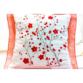 ✨Vỏ gối tựa lưng thêu tay hoa đào đỏ TMD104055