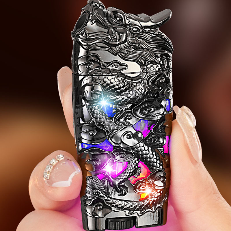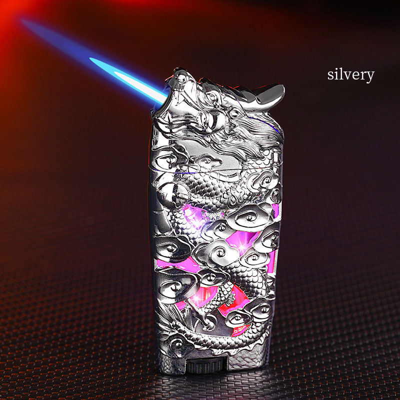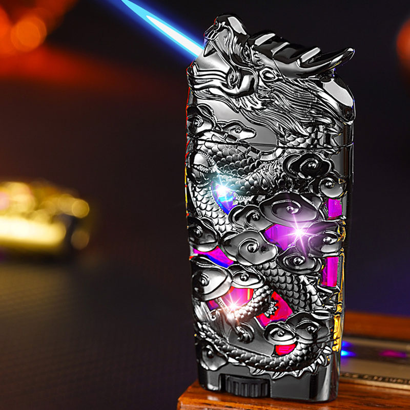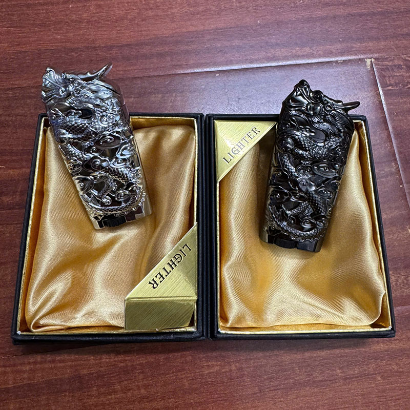 Bật Lửa Khè Dập Nổi Hình Rồng 2 Đèn Led ( Xài Gas)
