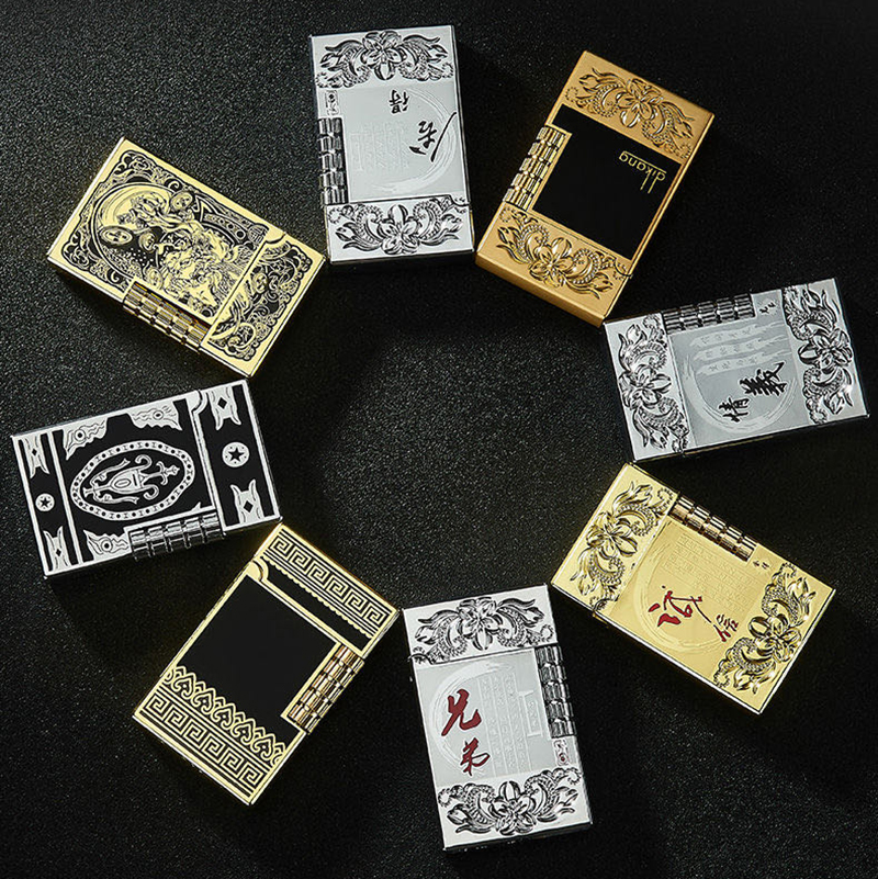 - – Họa tiết: Nhiều hình, giao hình ngẫu nhiên - – Loại bật lửa: Bật lửa xăng đá - – Số ngọn lửa: 1 - – Đánh lửa: Đá lửa - – Nhiên liệu: Xăng - – Tiện ích: Đi gió - – Chất liệu: Kim loại - – Kích thước: 70mm x 33mm x 7,6mm (Siêu mỏng) - – Trọng lượng: ~60g (Chưa bao gồm bao bì) - – Bộ sản phẩm bao gồm: 1 bật
