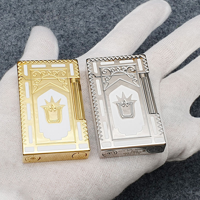 ✨Vỏ Hột Quẹt Bật Lửa Gas Đá S.T Upon D82b Thiết Kế Họa Tiết Sơn Mài Trắng Hoa Văn Hoàng Gia Cổ Điển Độc Đáo - Dùng Gas Đá Cao Cấp