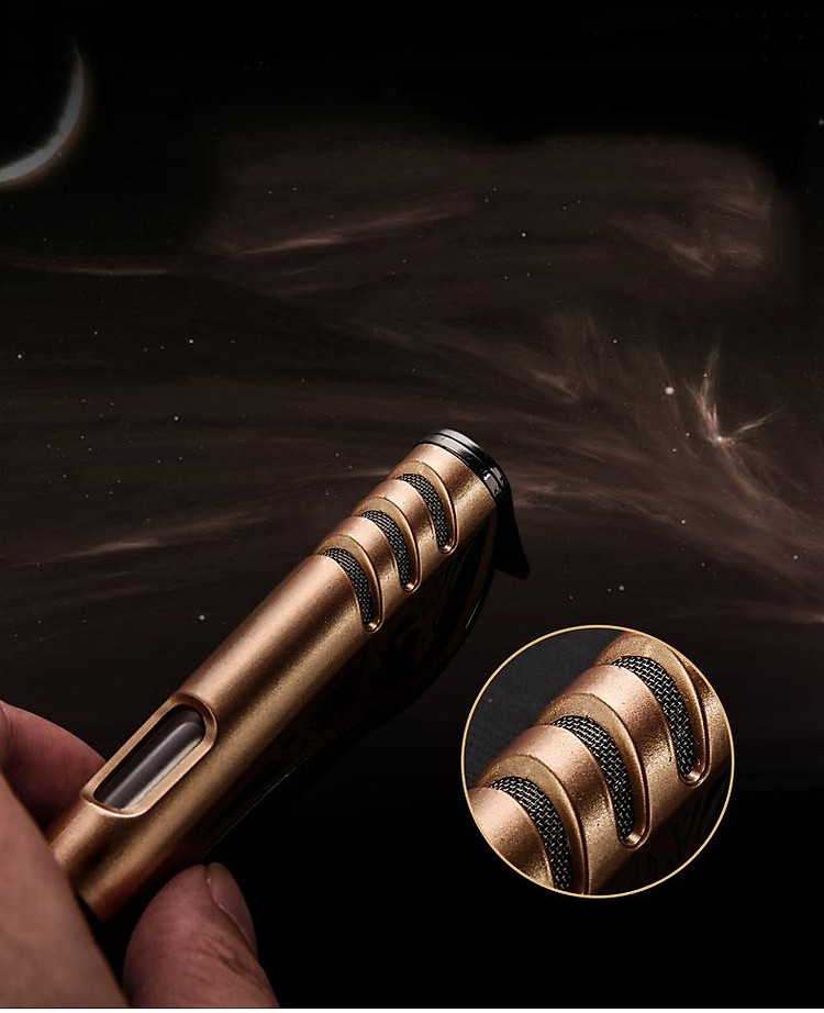 Thân bật lửa được làm bằng hợp kim sử dụng gas butan có thể bơm gas sử dụng nhiều lần