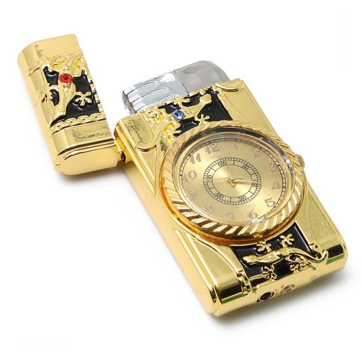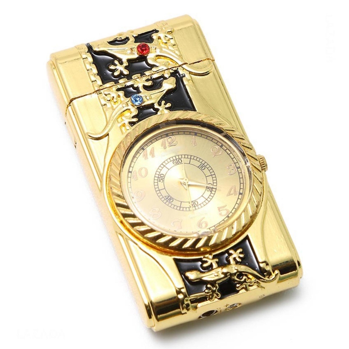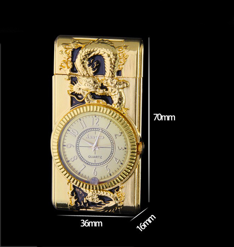 Bật Lửa Hộp Quẹt Khò Gas Kiêm Đồng Hồ Cầm Tay Phát Đèn Led In Nổi Hình rồng