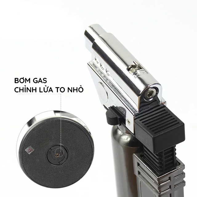 Thiết kế dạng khò gas, đánh lửa tự động, có thể điều chỉnh được nhiệt độ cũng như ngọn lửa nơi đầu khò. Dụng cụ tiện ích thích hợp cho nhiều mục đích sử dụng: