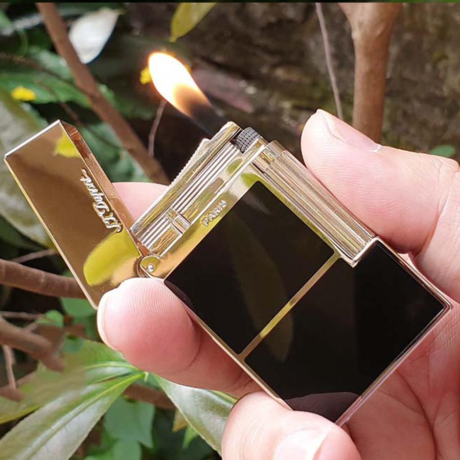 Mở Hộp Trải Nghiệm Bật Lửa Dupont Gas Đá Họa Tiết Kẻ Dọc D75 Chặn 4 Góc Cao Cấp