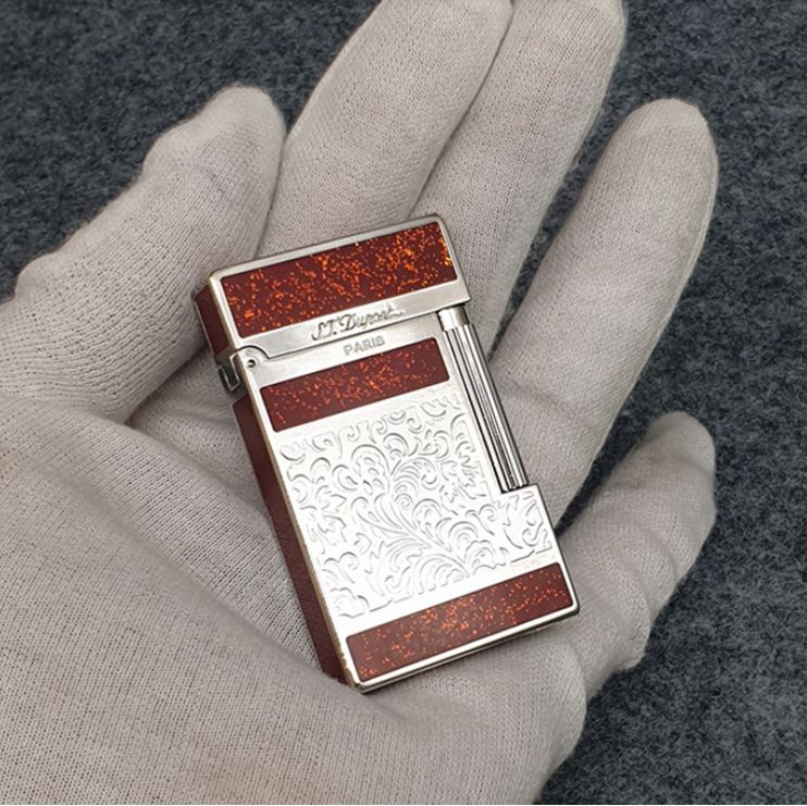 [TUYỆT ĐẸP] Hộp Quẹt Bật Lửa S.T Dupont Ga Đá D22V Họa Tiết Hoa Văn Sang Trọng