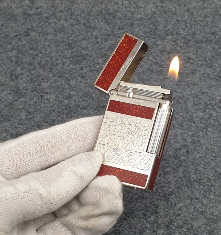 Hộp Quẹt Bật Lửa Ga Đá Dupont D201V, Khắc Họa Tiết Hoa Văn Tuyệt Đẹp, Tiếng Kêu Cực Hay