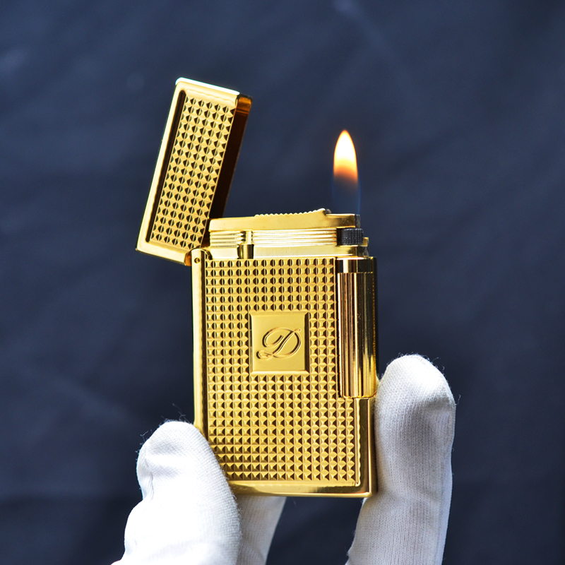 Hộp Quẹt Bật Lửa Ga Đá Dupont D05T, Họa Tiết Kẻ Khắc Chữ Tuyệt Đẹp