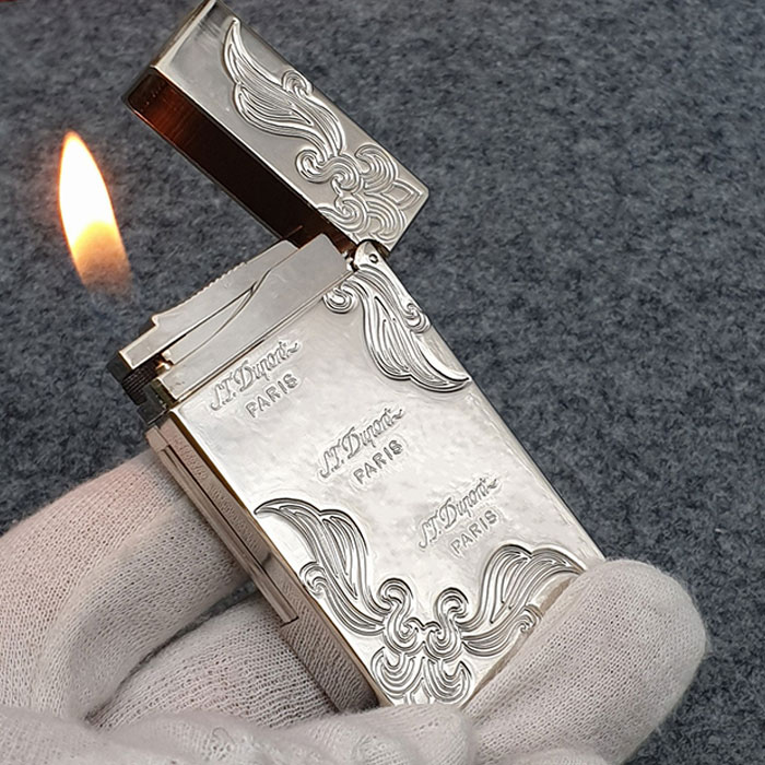 [TUYỆT ĐẸP] Hộp Quẹt Bật Lửa S.T Dupont Ga Đá D22V Họa Tiết Hoa Văn Sang Trọng