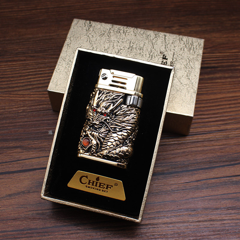 Hộp Qụet Bật Lửa Xăng Đá Chief CF218R Đánh Đá Tự Động Hình Rồng Nổi Sang trọng