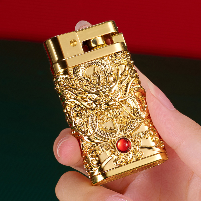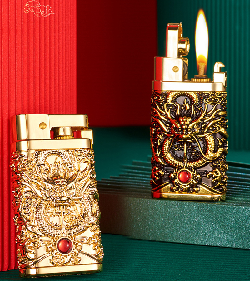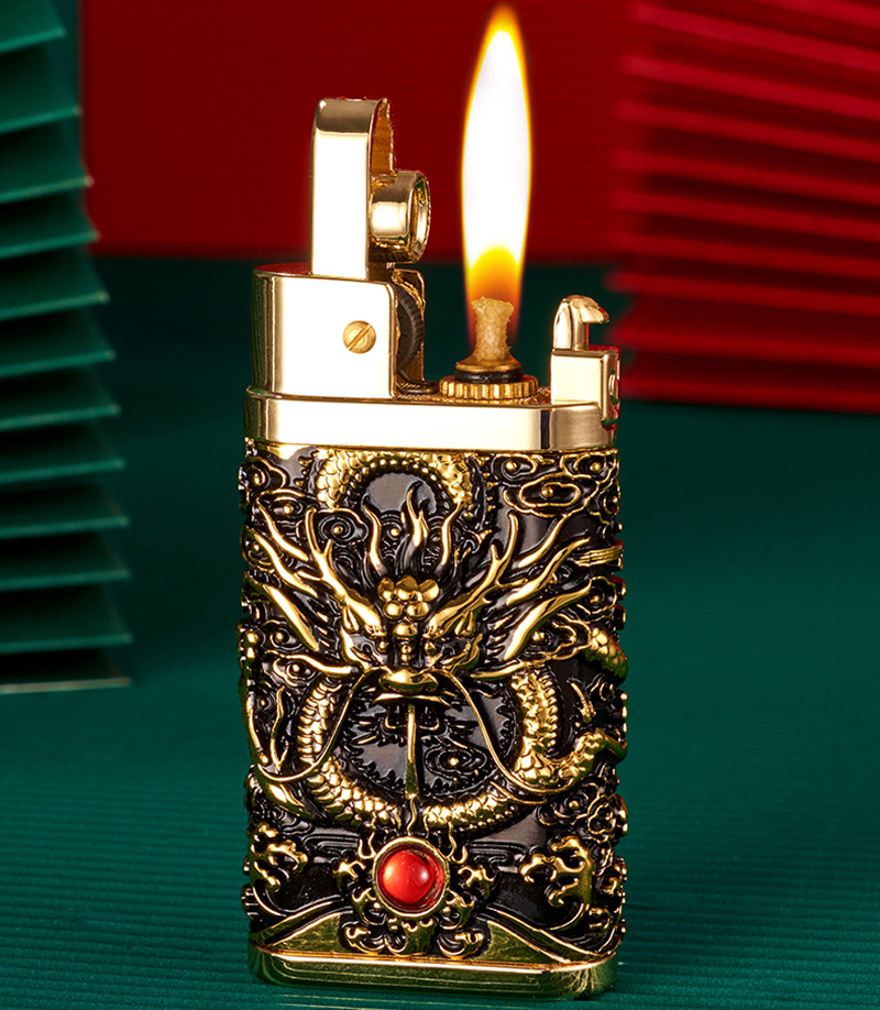 Hộp quẹt bật lửa xăng đá đánh lửa tự động rồng cuộn ôm ngọc #batluadep #batluaxang #batluadoc