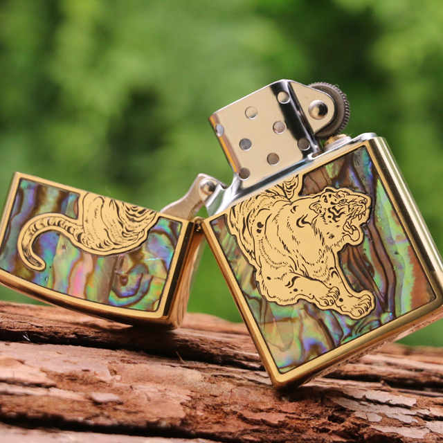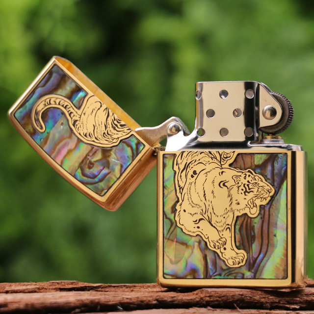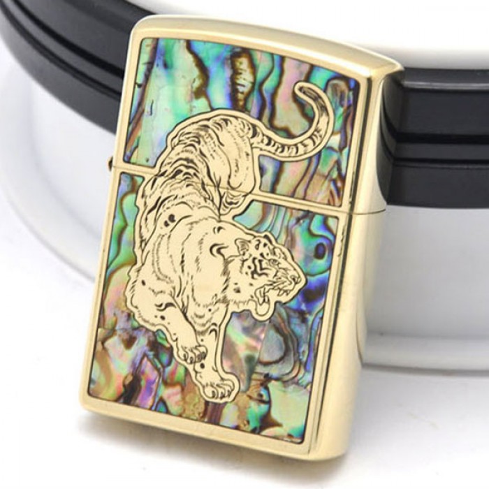 ✨Vỏ Hột Quẹt Bật Lửa Xăng Đá Zorro Khảm Trai Hình Hổ Z91592