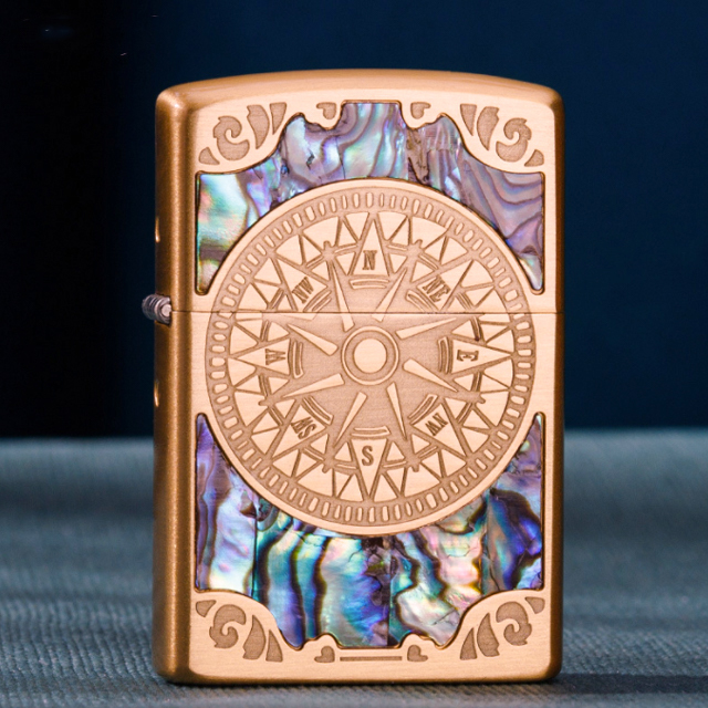 ✨Vỏ Hột Quẹt Bật Lửa Xăng Đá Zorro Z91751 Họa Tiết Khảm Trai Hình La Bàn - Dùng Xăng Bấc Đá Cao Cấp