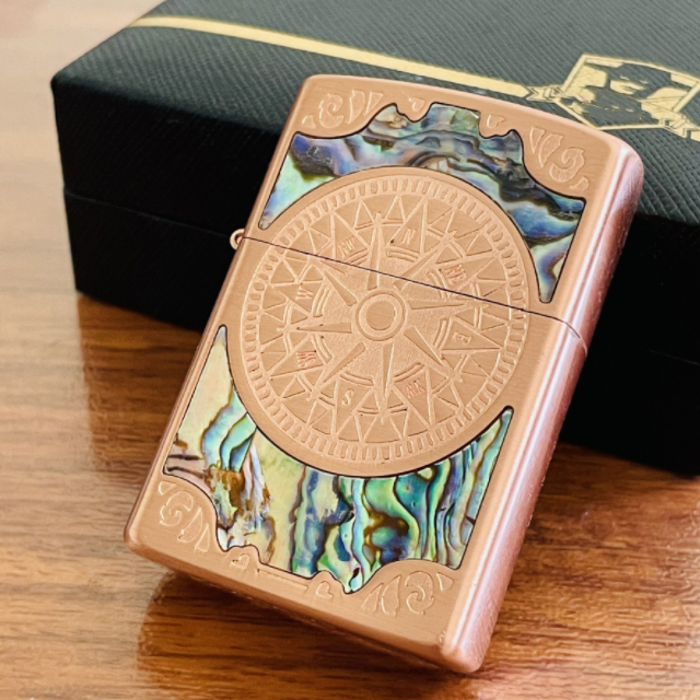 Bật lửa xăng đá Zorro vàng hồng khắc la bàn khảm trai Z91751 ( 0918924444)