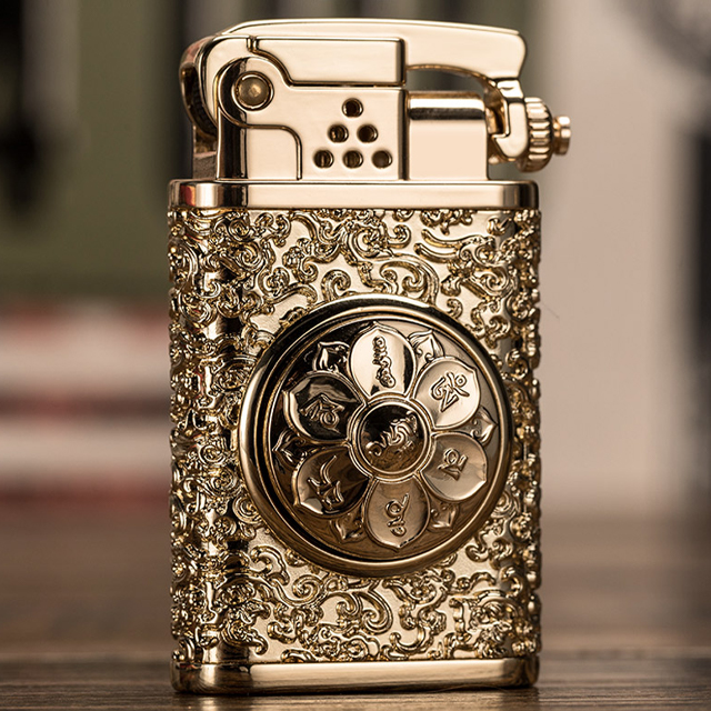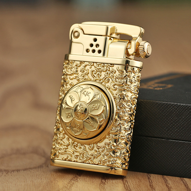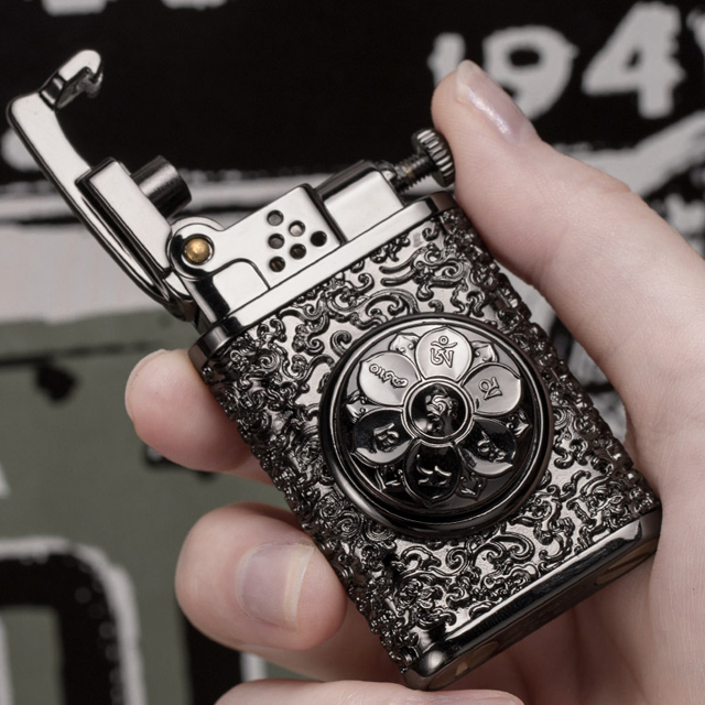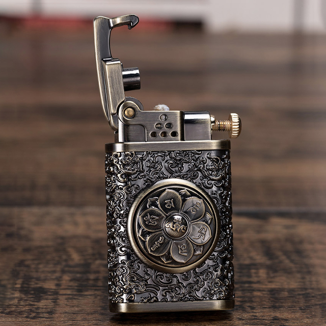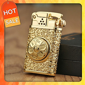 Hộp Quẹt Bật Lửa Xăng Đá Zorro Z602, Khắc Hoa Văn Họa Tiết Trụ Xoay Hình Bông Sen