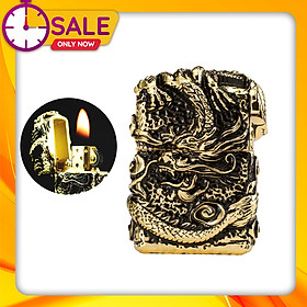 ✨Vỏ Hột Quẹt Bật Lửa Zorro Z91286C Họa Tiết Rồng Cuộn Đẹp Độc Lạ Màu Vàng - Dùng Xăng Bấc Đá Cao Cấp