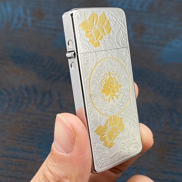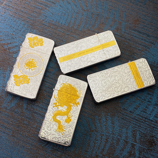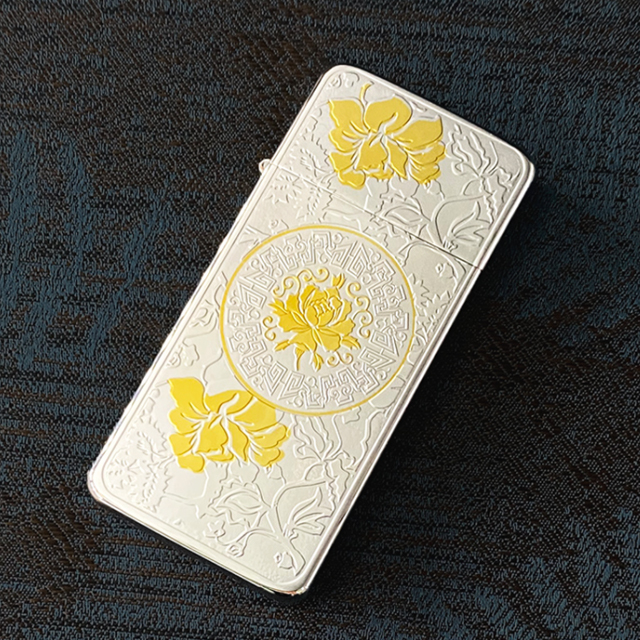Hộp quẹt bật lửa xăng đá siêu mỏng hoa văn ZS5 bạc viền vàng #batluadocla #batluadep #zorro