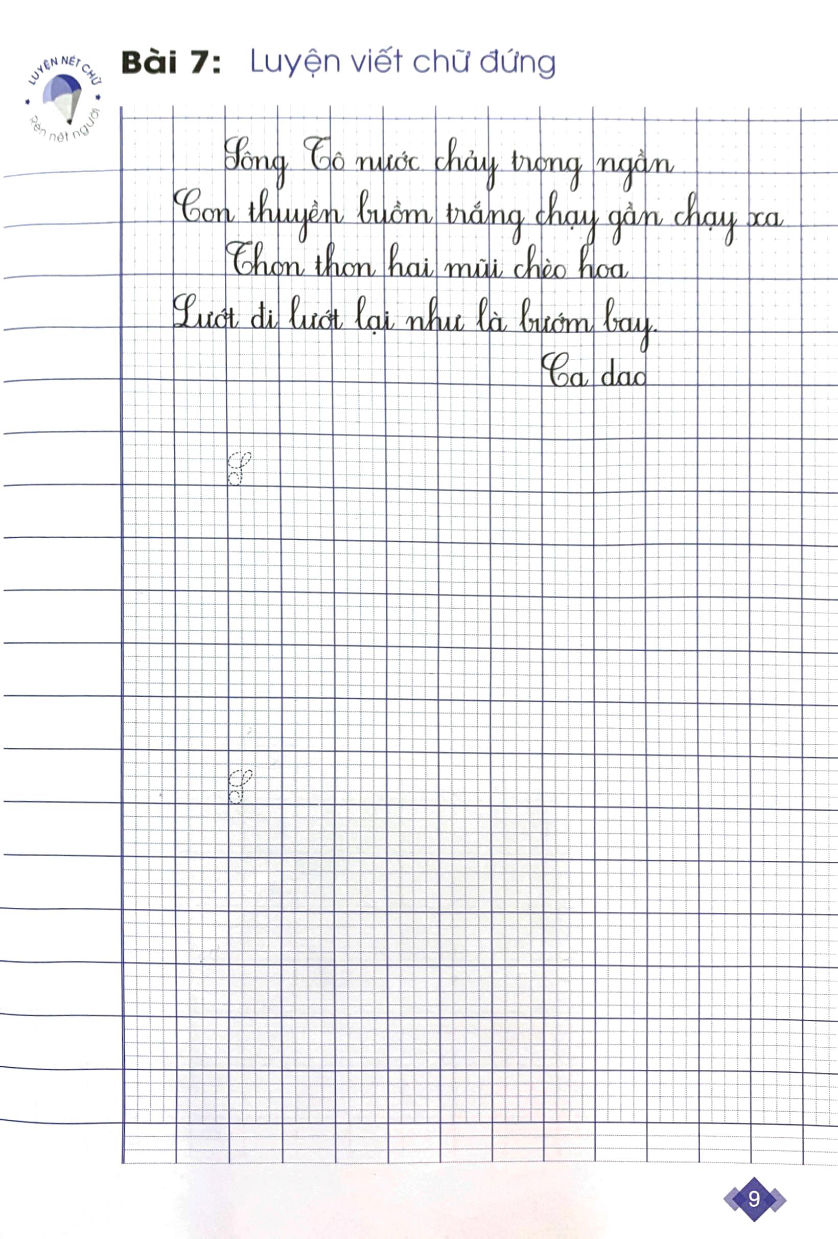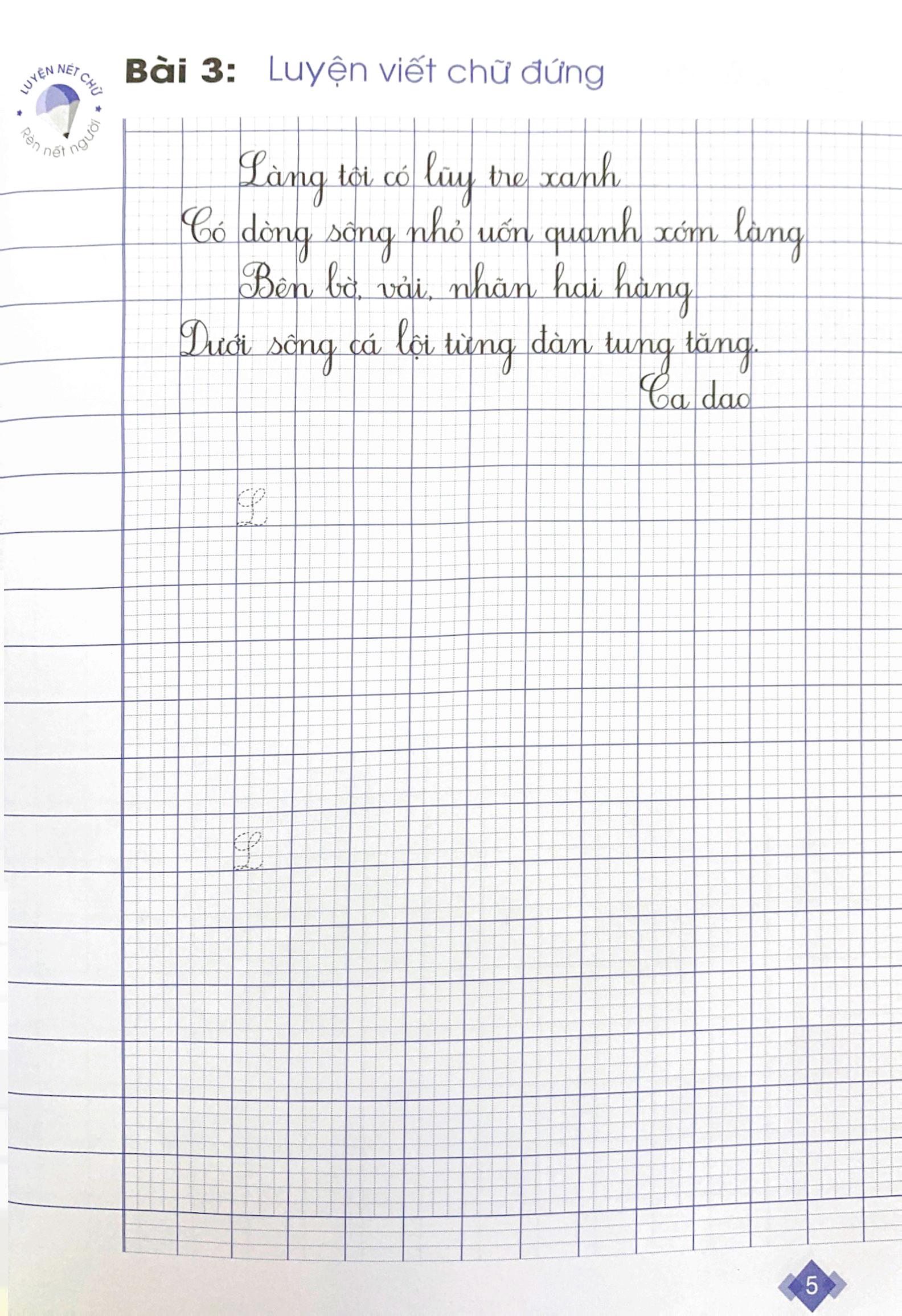 Trong từng bài, Học sinh sẽ được Luyện viết Chữ hoa, Chữ đứng và Chữ nghiêng. Nội dung viết là những câu ca dao, tục ngữ; những đoạn thơ, đoạn văn đặc sắc… vừa giúp các con Luyện chữ, vừa bồi đắp cho các con vốn kiến thức văn học để thêm yêu tiếng Việt.
