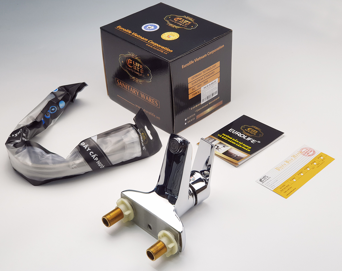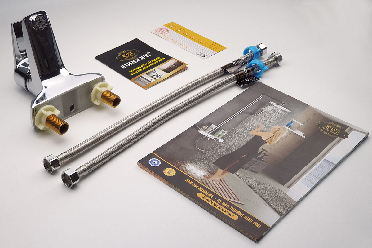 • Bộ sản phẩm được đóng gói trong túi vải cotton, hộp màu riêng của Eurolife. Bộ sản phẩm đầy đủ bao gồm : Thân vòi Lavabo, 1 bát gắn, 2 roong cao su, 2 dây cấp 60cm, 1 phiếu bảo hành chính hãng.