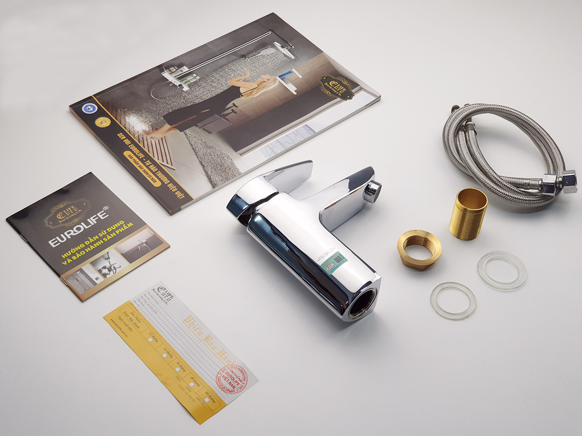 • Bộ sản phẩm được đóng gói trong túi vải cotton, hộp màu riêng của Eurolife. Bộ sản phẩm đầy đủ bao gồm : Thân vòi Lavabo, 1 bát gắn, 2 roong cao su, 2 dây cấp 60cm, 1 phiếu bảo hành chính hãng.