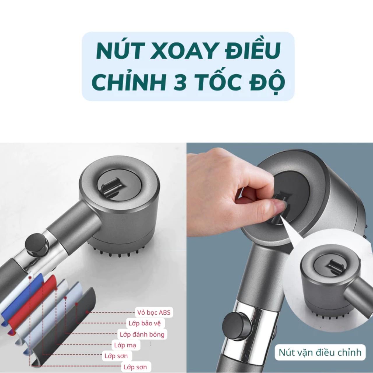Vòi sen tăng áp, đầu V=vòi hoa sen Masage 4 trong 1, 3 chế độ áp suất cao tiết kiệm nước lõi cotton lọc cho nhà tắm