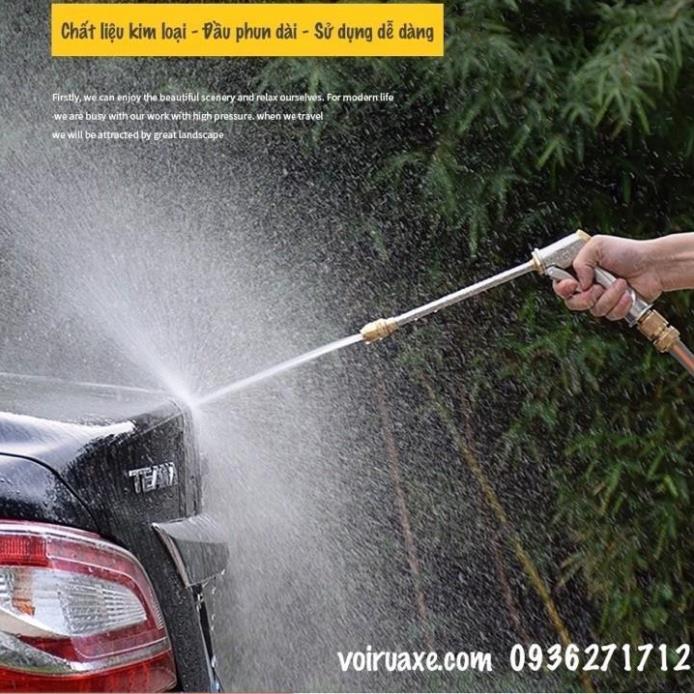 Tăng 300% áp lực nước so với vòi thường Vật liệu : đầu vòi bơm làm bằng đồng tạo độ chắc chắn, không hoen rỉ Đa chức năng Tưới cây, tưới hoa, rửa xe, vệ
