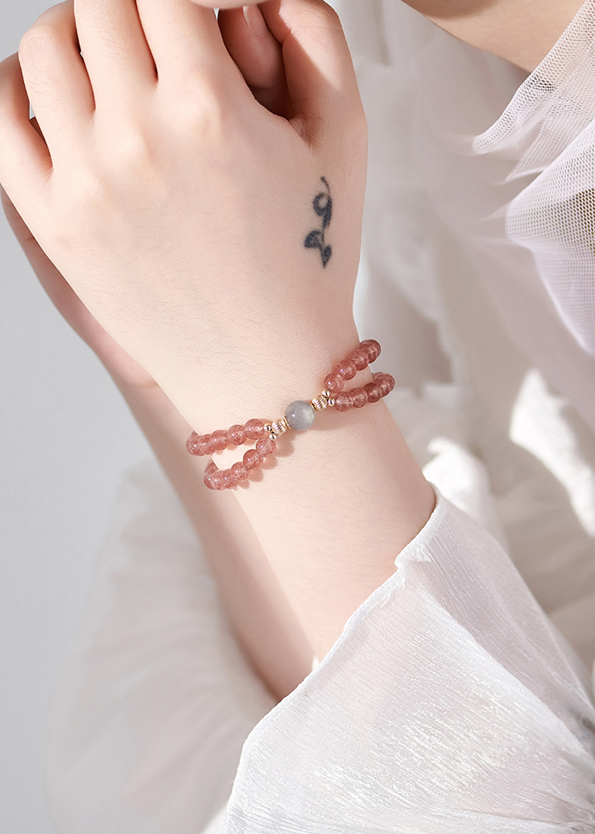 Vòng tay đá Thạch Anh Dâu mang nét đẹp nhẹ nhàng, nữ tính và hết sức duyên dáng, giúp người phụ nữ trở nên nổi bật và ấn tượng hơn trong mắt những người xung quanh.