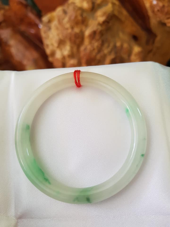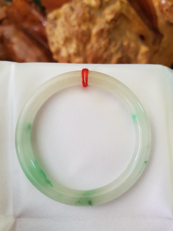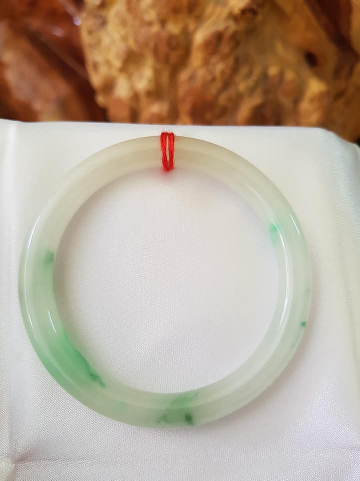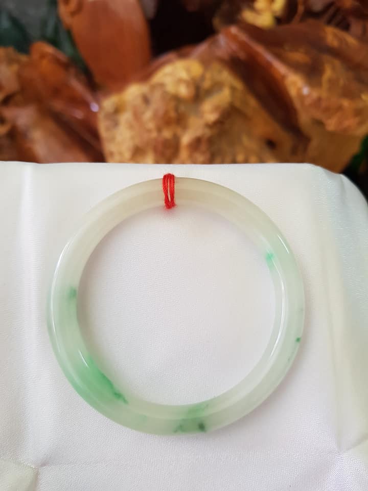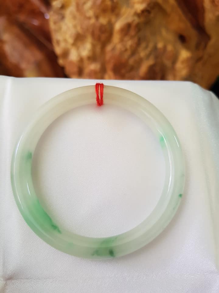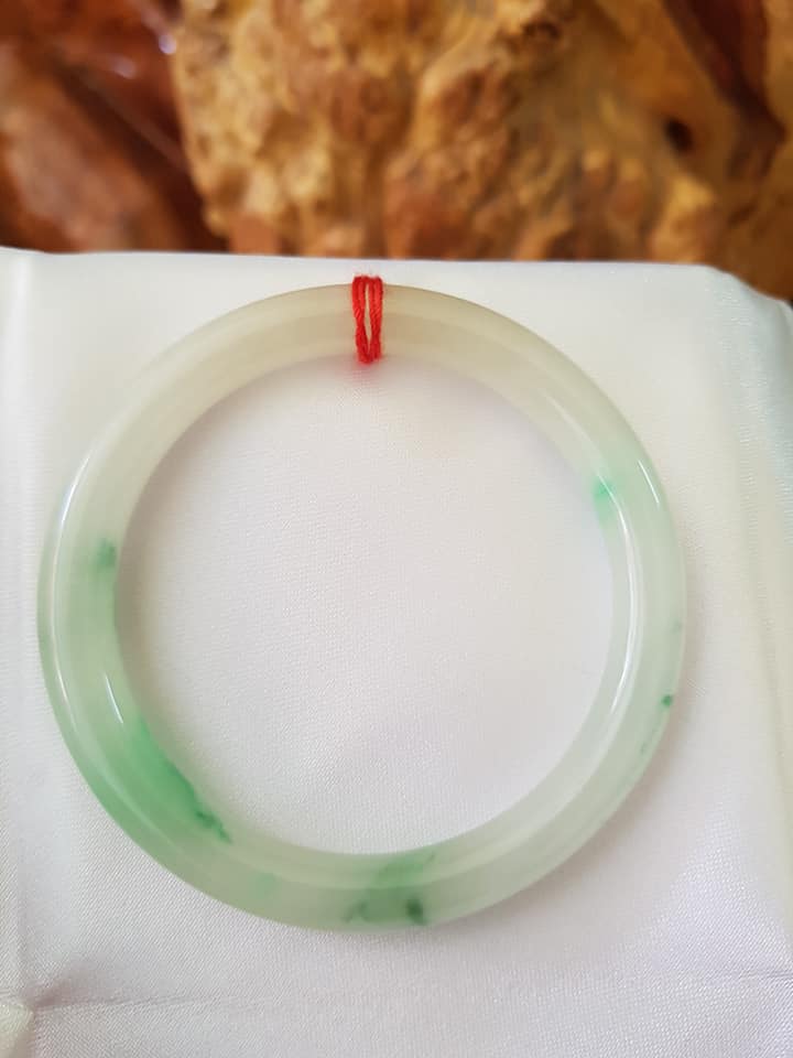 Vòng cẩm thạch tự nhiên A Sịn 48mm c7mm Trắng VÂN XANH Lý lam vàng nhẹ 1 bên Nữ tay nhỏ 35kg -49kg ạ