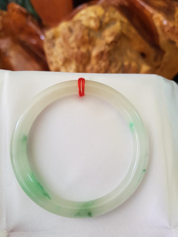 Vòng tay Nữ Đá Cẩm Thạch mới TR Lý 57 mm x cọng 7,5mm Màu Xanh lý tươi trắng 2 bên đều vòng đẹp Nữ 55kg - 64kg đeo đẹp món quà tặng chính mình