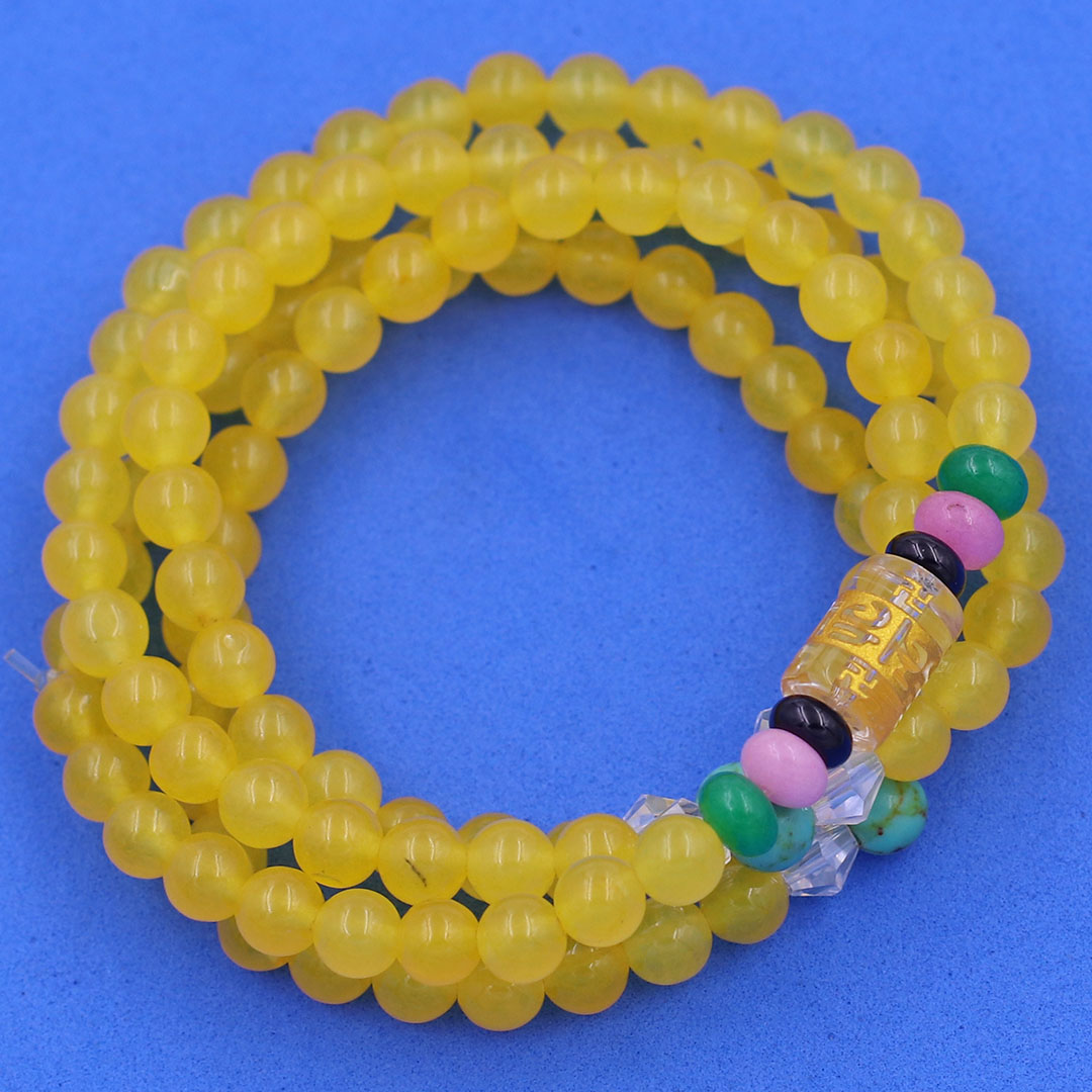 ✨Vòng chuỗi 108 hạt đá thạch anh vàng charm lục tự chân ngôn - hạt 8 ly ( size lớn ), vòng chuỗi niệm Phật, vòng chuỗi đeo tay