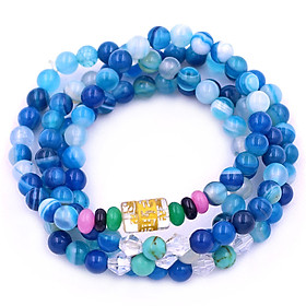 ✨Vòng chuỗi 108 hạt mã não xanh biển sọc charm lục tự chân ngôn - hạt 8 ly ( size lớn ), vòng chuỗi niệm Phật, vòng chuỗi đeo tay
