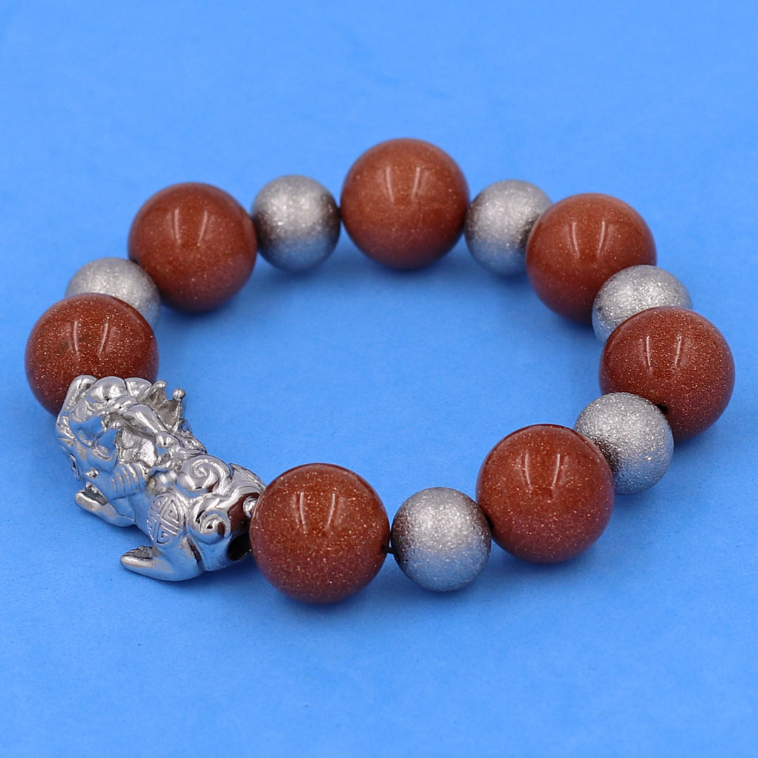 Thông tin sản phẩm : Vòng chuỗi đeo tay đá kim sa 14 ly ( size lớn ) charm tỳ hưu và bi inox, vòng tay chuỗi hạt