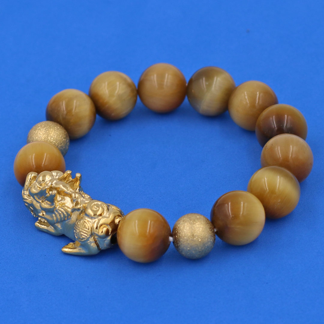 Thông tin sản phẩm : Vòng chuỗi đeo tay đá mắt hổ vàng 14 ly ( size lớn ) charm tỳ hưu và bi inox vàng, vòng tay chuỗi hạt