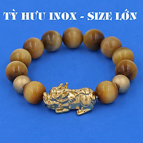 Kính thước hạt: 14 ly : 11 hạt charm tỳ hưu inox size lớn, 2 bi inox vàng, phù hợp ngươi đeo có cân nặng trên 64 kg