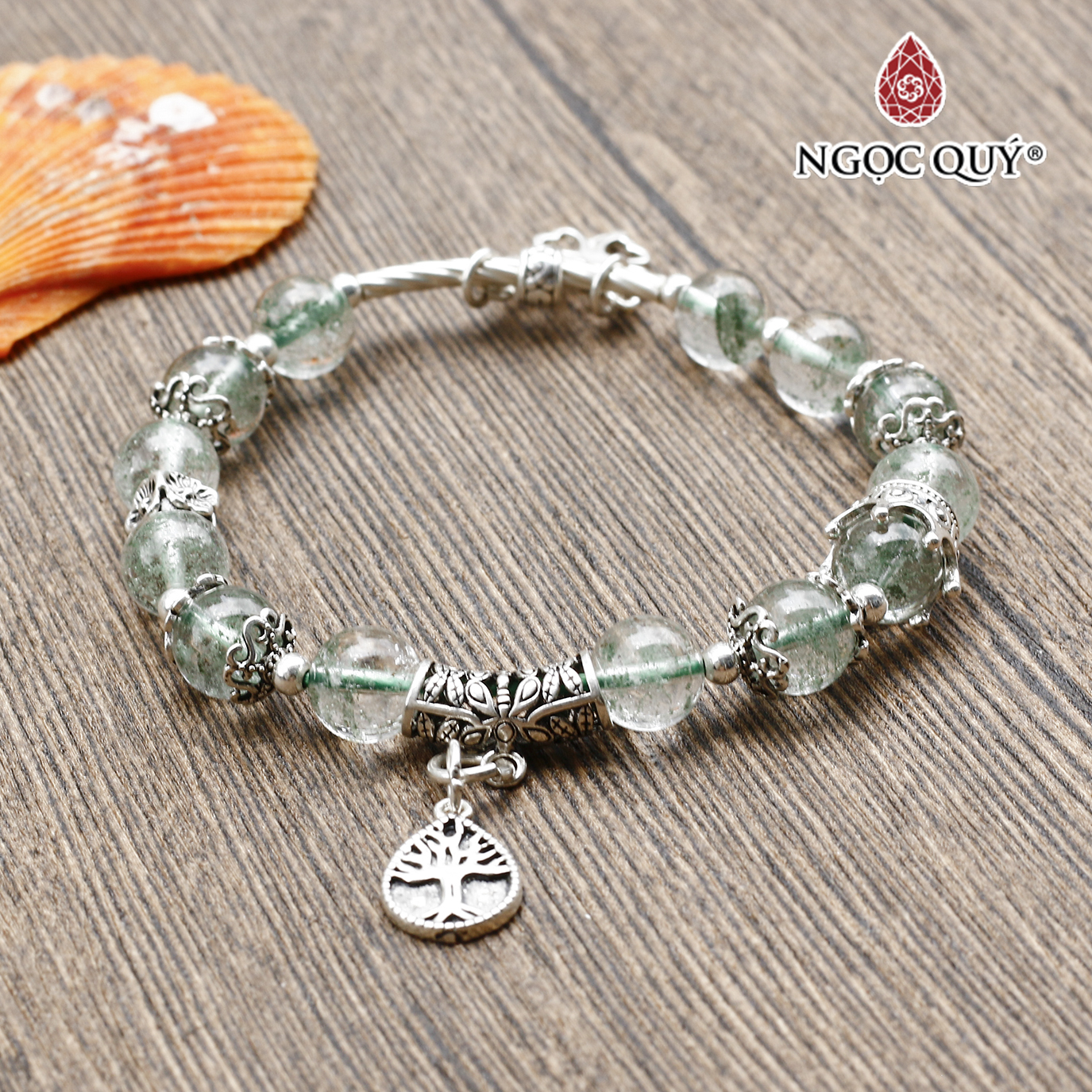 VÒNG TAY ĐÁ THẠCH ANH TÓC XANH PHỐI DREAM CATHCER BẠC: Được sự chúc phúc từ các tinh linh, Thạch Anh Tóc Xanh như mang ta quay về với những khu rừng thơ mộng, sự