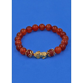 Vòngg Tay Phong Thuỷ Đá Mã Não Đỏ Mix Tỳ Hưu Hợp Mệnh Hoả, Mệnh Thổ