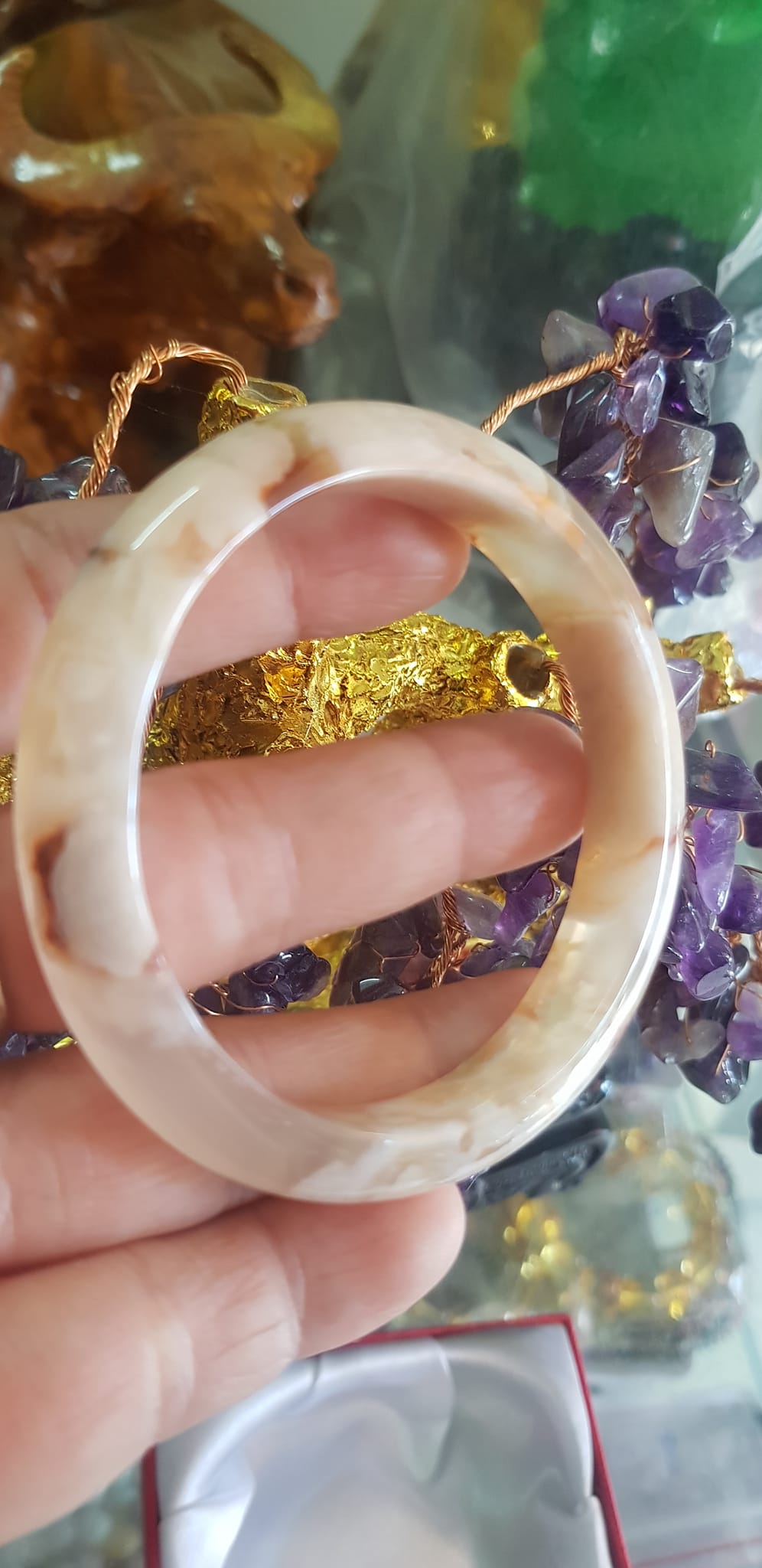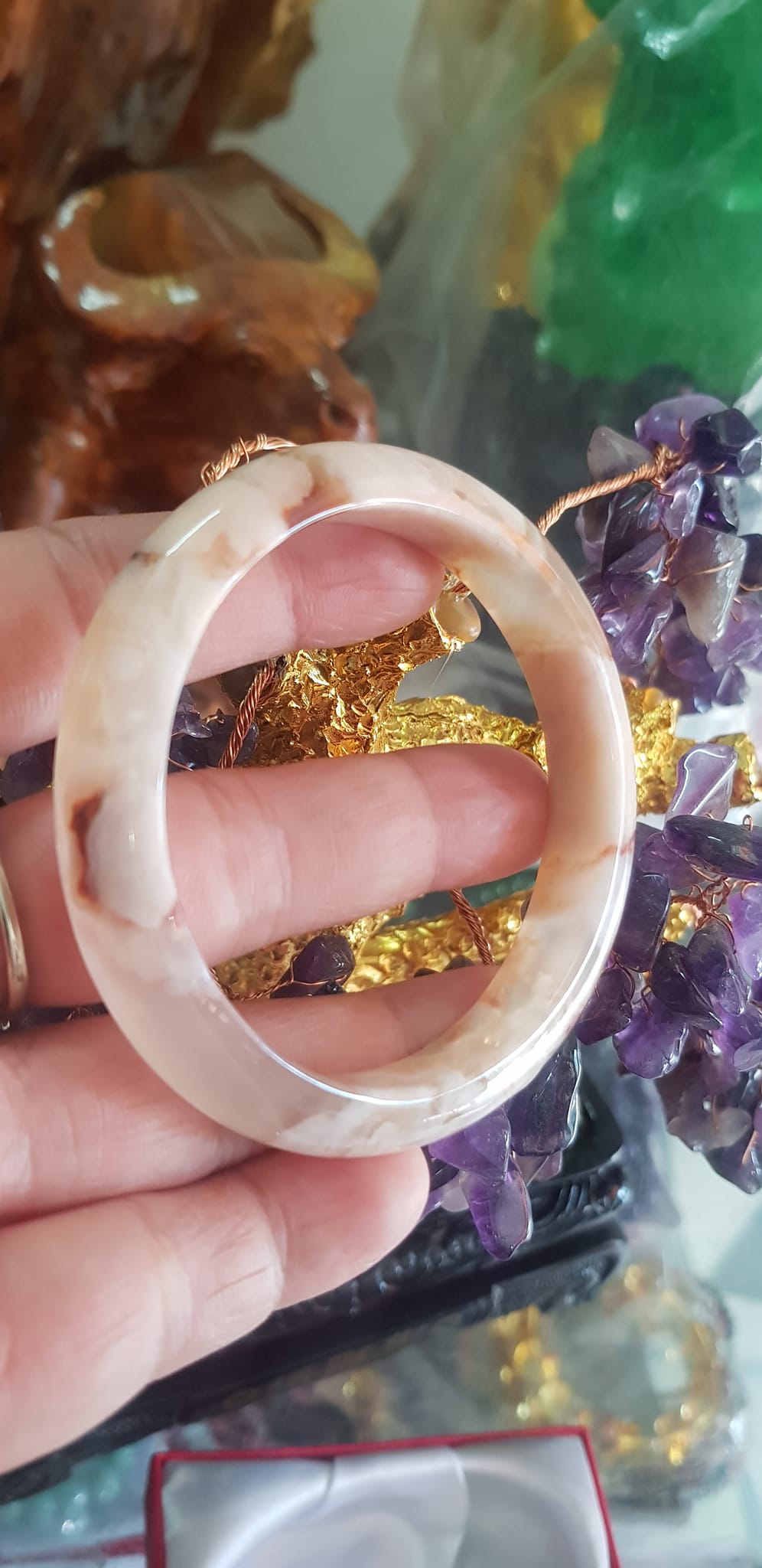 Vòng đeo tay Nữ Bản Hẹ Đá Mã Não Hoa Rau Câu 53mm x Cao 10mm x dầy 7mm bóng đẹp nữ 50kg - 53kg đeo ạ