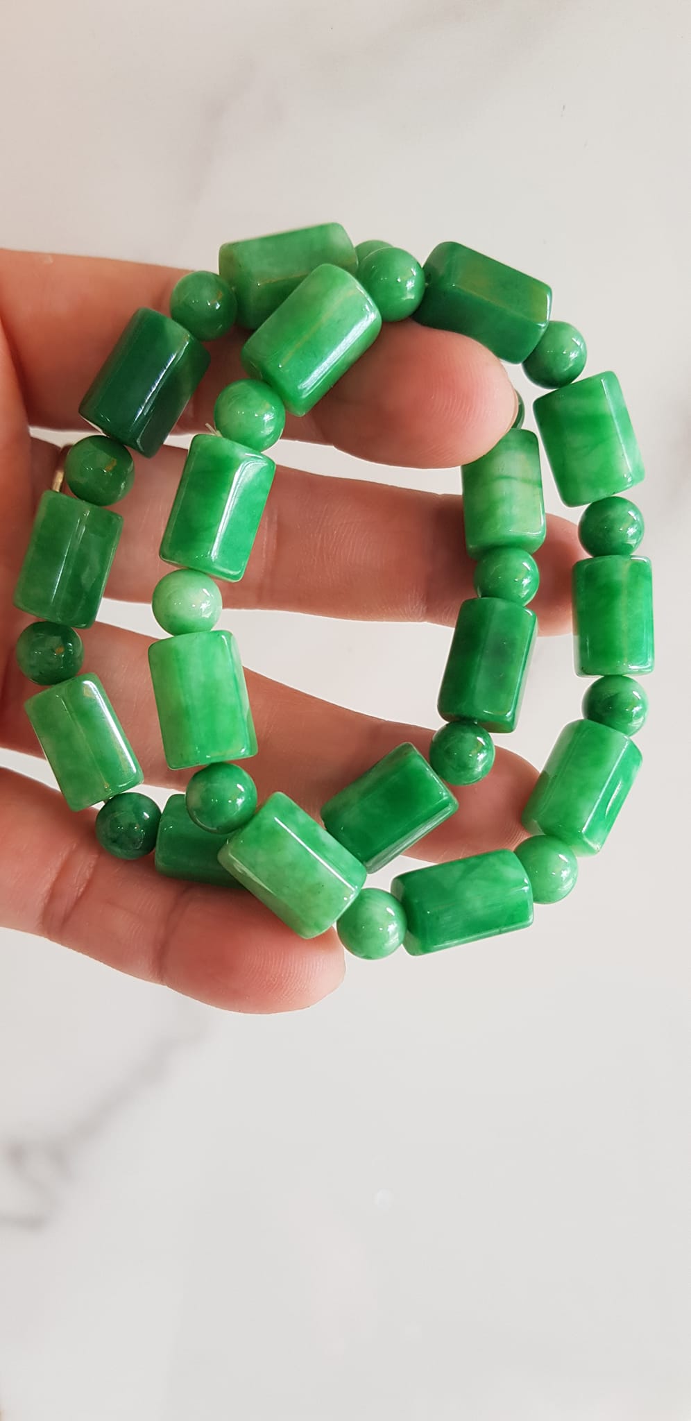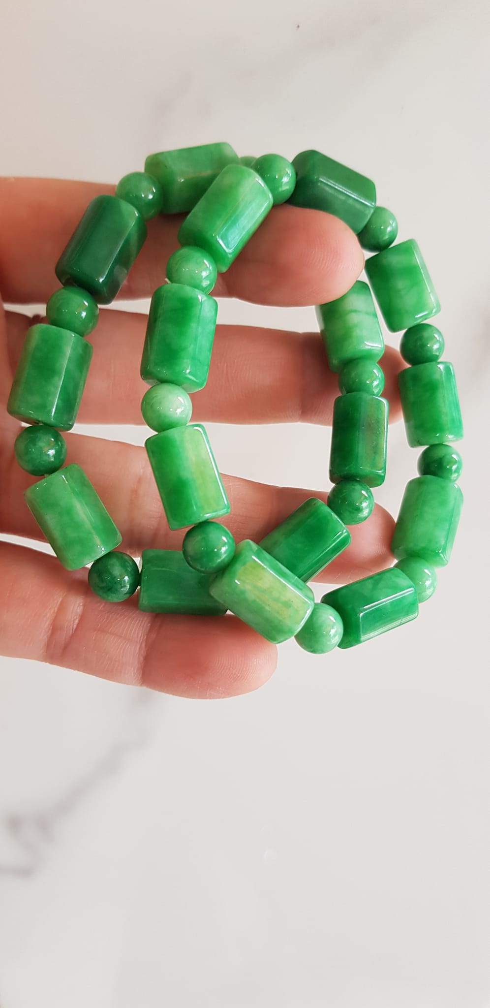 ✨Vòng đeo tay nữ đá cẩm thạch xanh mix kiểu hạt ống vuông dài tròn size 10mm Nữ mệnh mộc hỏa thủy đeo xinh may mắn ạ