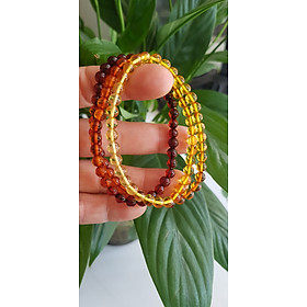 Vòng Hổ Phách tự nhiên đeo quấn tay kiểu 3 vòng Size hạt 5mm 3 màu tam hợp màu vàng anh cam đỏ đậm phối tay các Chị Em Nữ lên tay đeo rất xinh ạ
